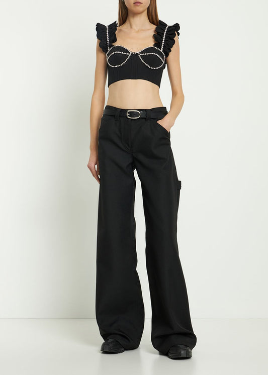 Embellished Poplin Ruffle Bustier