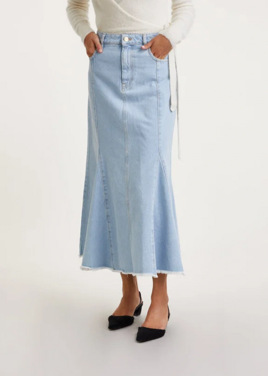 Denim Peplum Midi Skirt