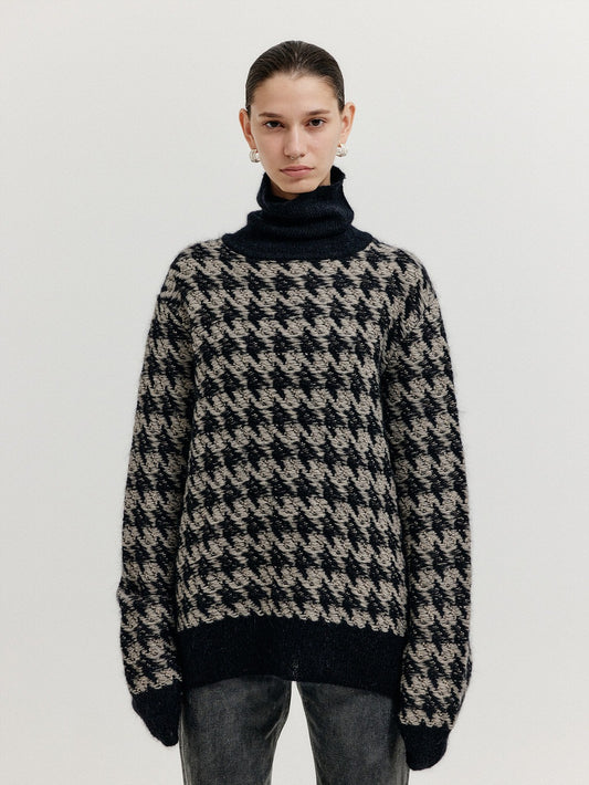 Ezal Houndstooth Check Knit Turtleneck