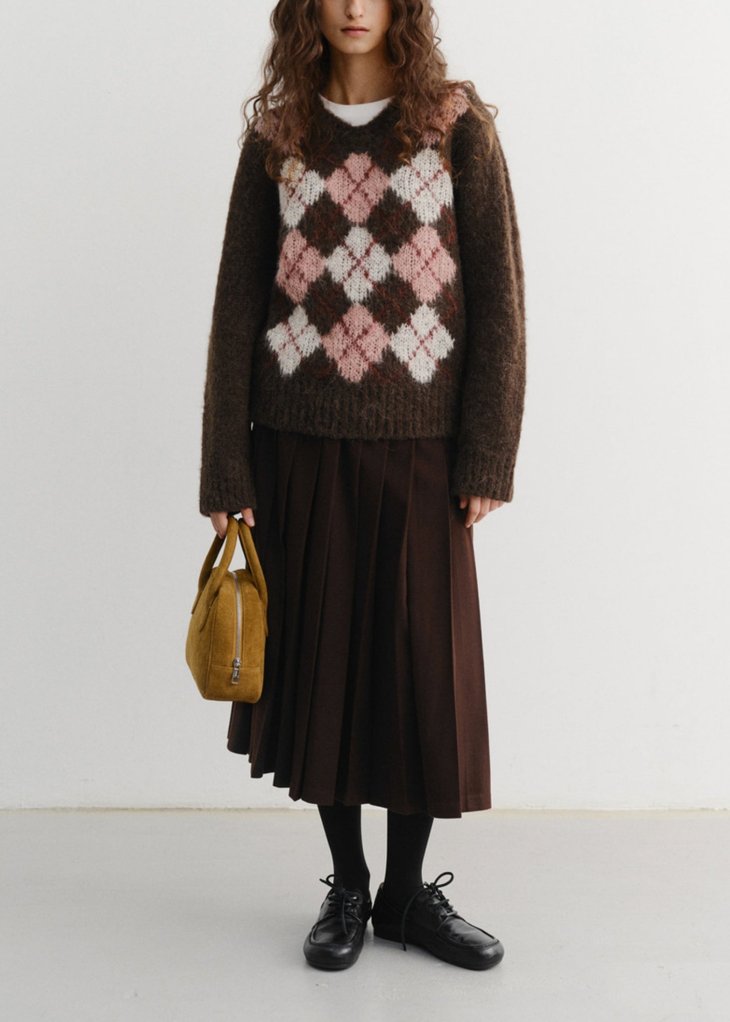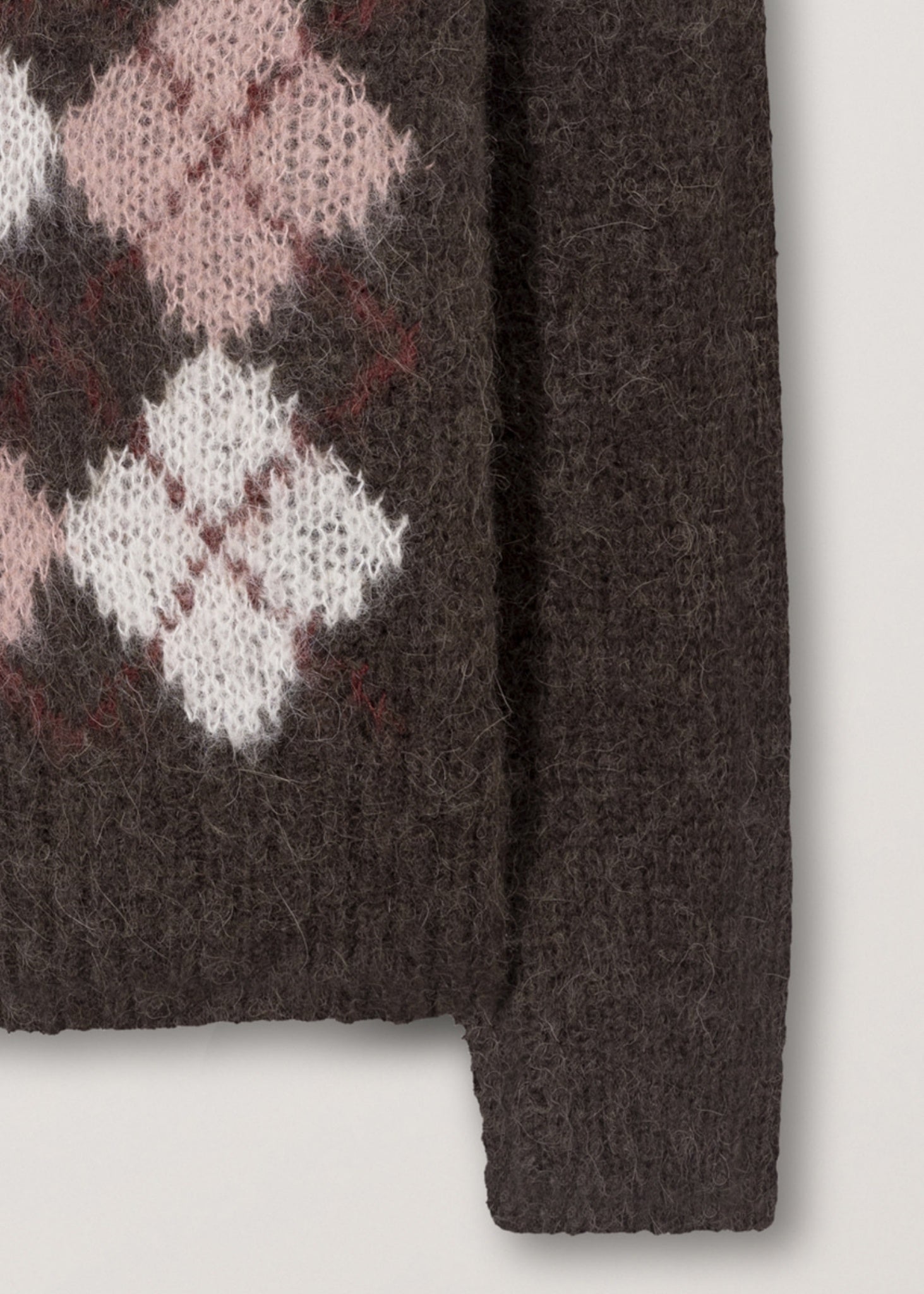 - Soft alpaca-blend argyle V-neck knit