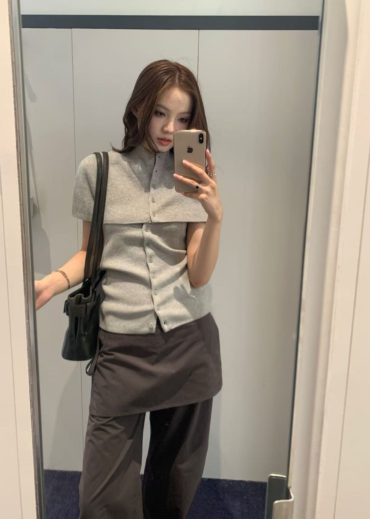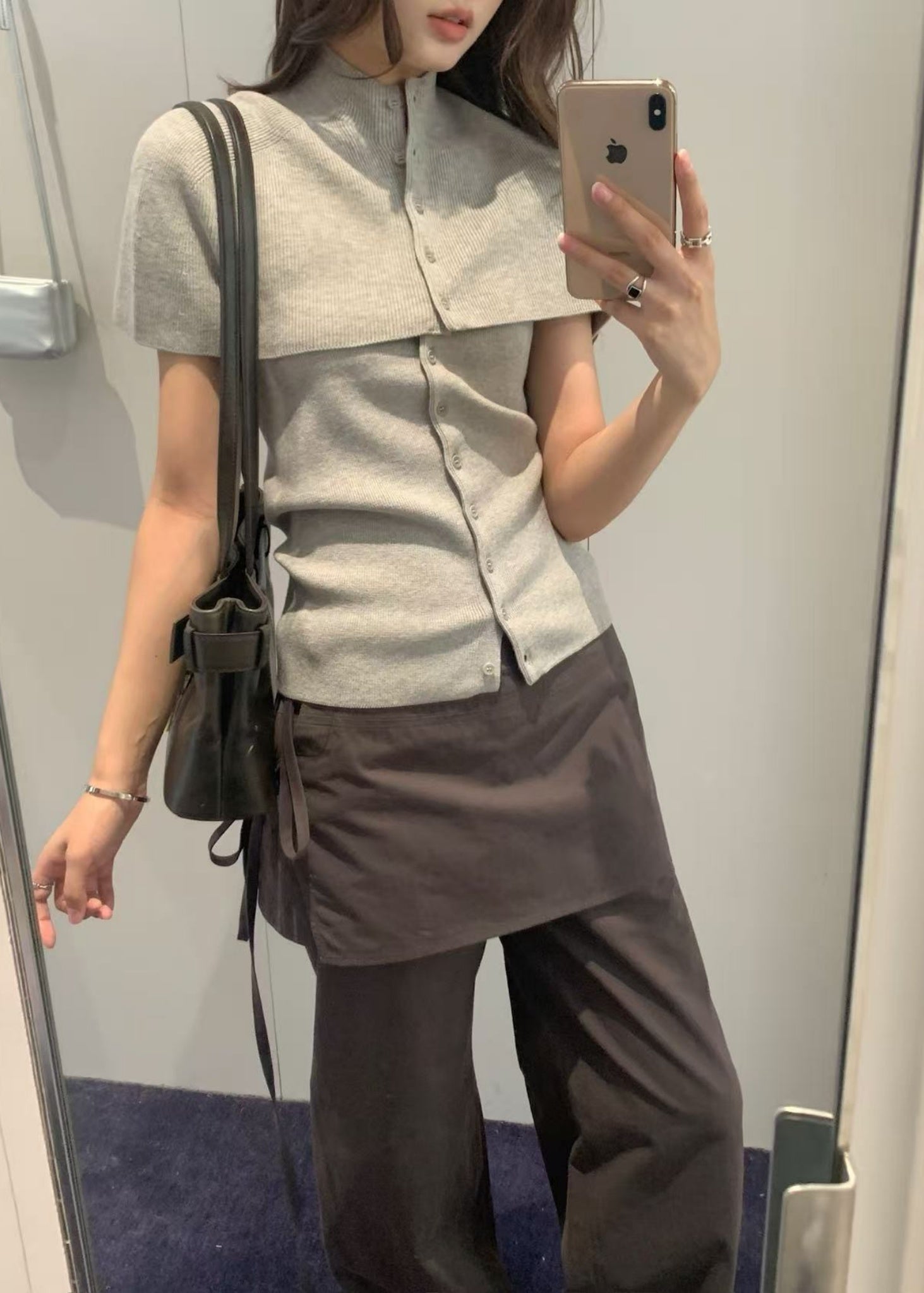 - A cape-style knit top and a button-up band