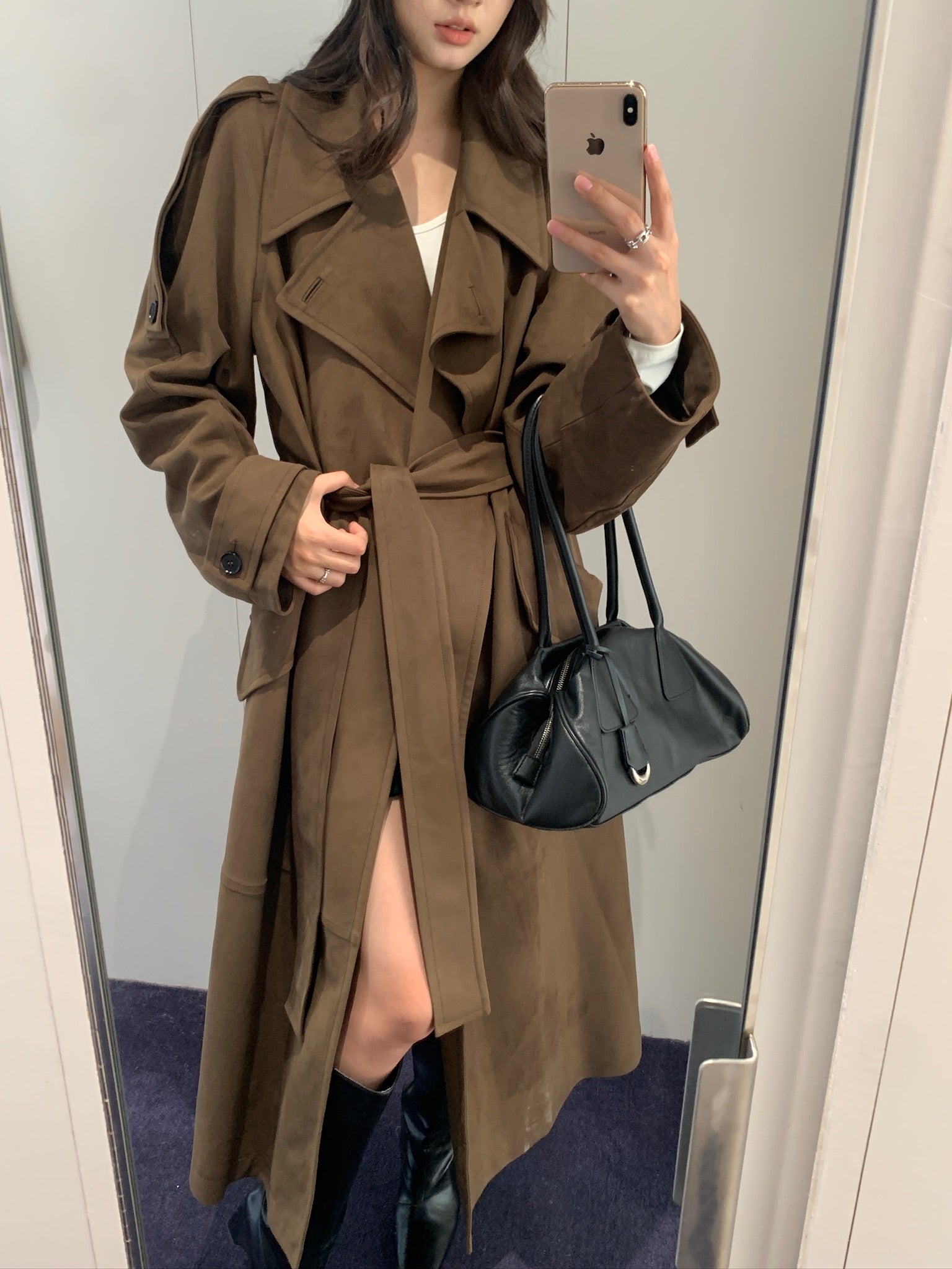 Suede Belted Trench Coat