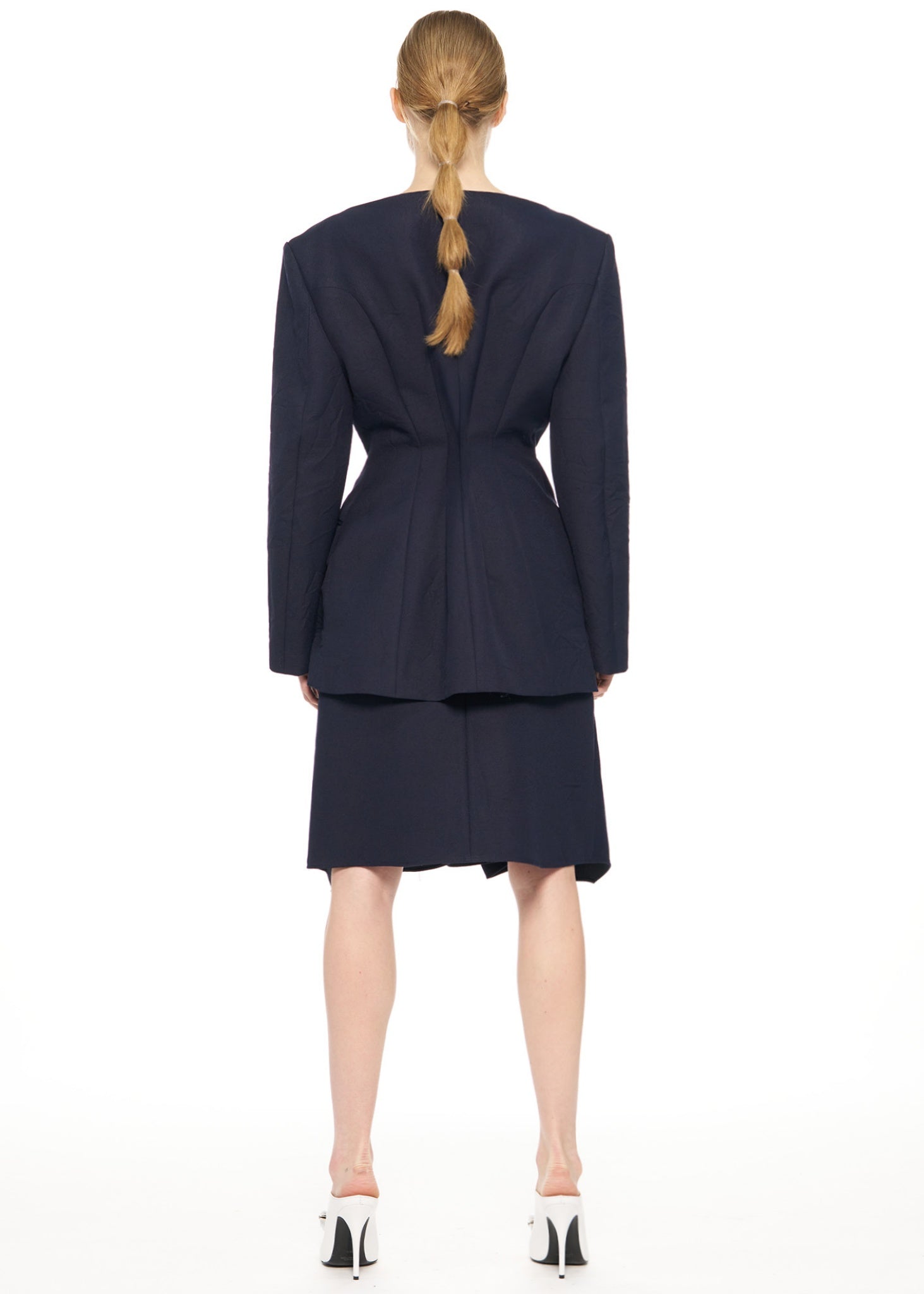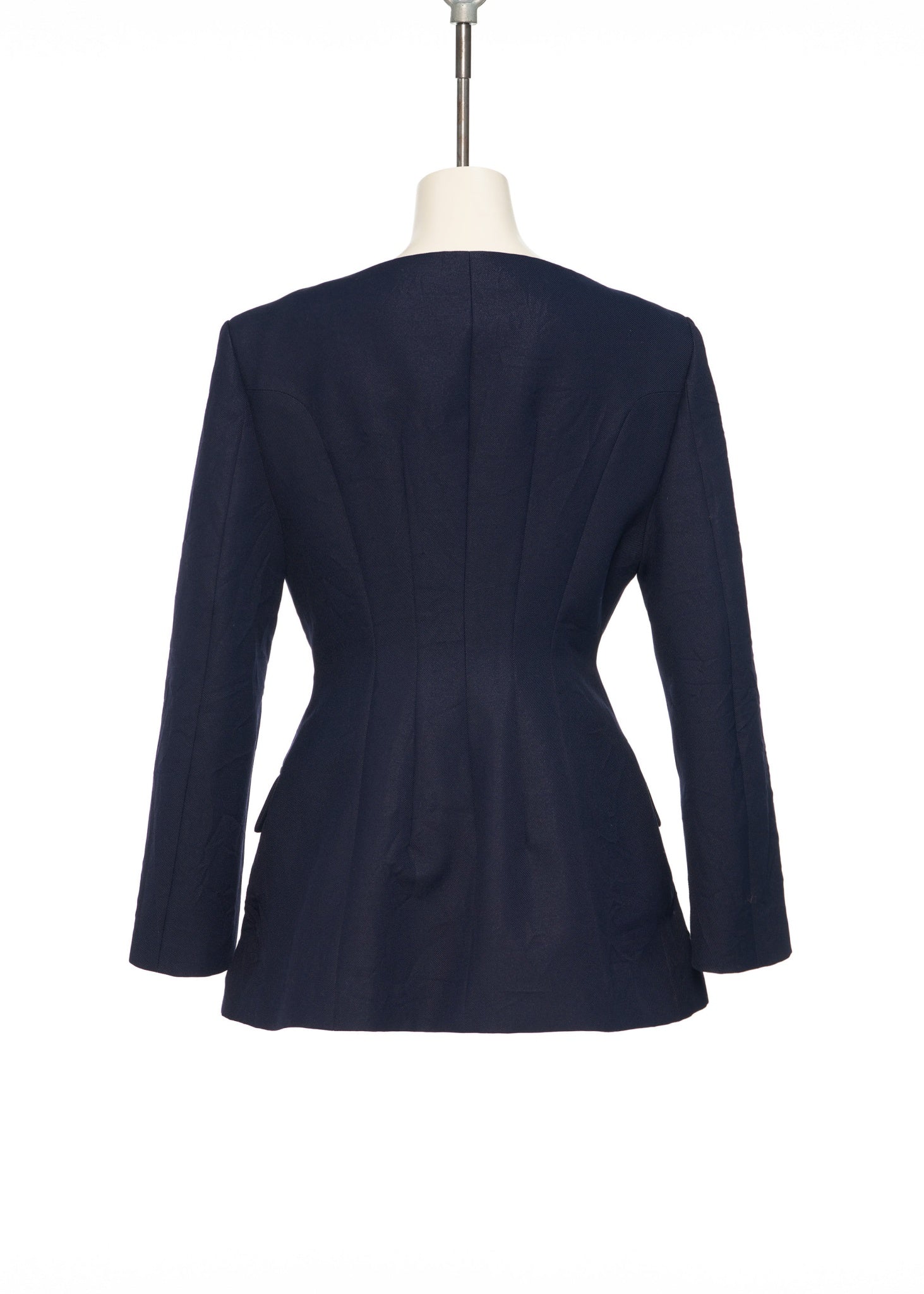 - This is a single-breasted jacket with an hourglass silhouette